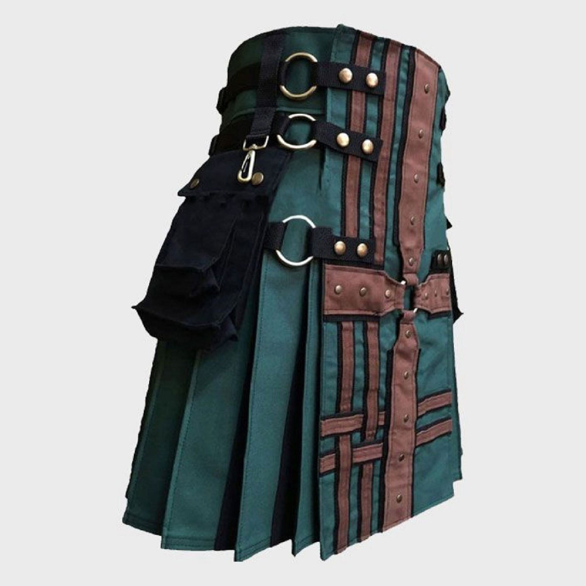 Hunter Green With Brown Medieval Modern Hand Made Hybrid Kilt Etsy Uk